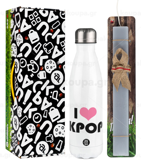I Love KPOP, Πασχαλινή Λαμπάδα με μεταλλικό παγούρι θερμός λευκός (500ml) & λαμπάδα αρωματική πλακέ (30cm) (ΓΚΡΙ)