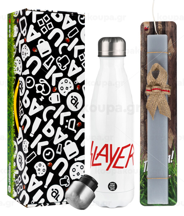 Slayer, Πασχαλινή Λαμπάδα με μεταλλικό παγούρι θερμός λευκός (500ml) & λαμπάδα αρωματική πλακέ (30cm) (ΓΚΡΙ)