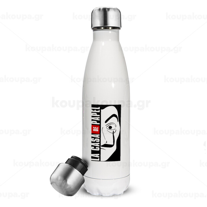 La casa de papel vertical, Πασχαλινή Λαμπάδα με μεταλλικό παγούρι θερμός λευκός (500ml) & λαμπάδα αρωματική πλακέ (30cm) (ΓΚΡΙ)