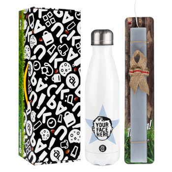 The office star CUSTOM, Πασχαλινή Λαμπάδα με μεταλλικό παγούρι θερμός λευκός (500ml) & λαμπάδα αρωματική πλακέ (30cm) (ΓΚΡΙ)