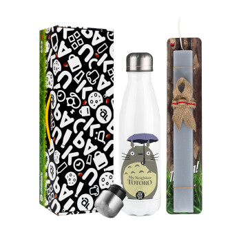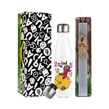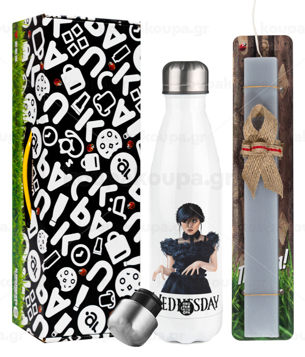 Wednesday Adams, dance with hands, Πασχαλινή Λαμπάδα με μεταλλικό παγούρι θερμός λευκός (500ml) & λαμπάδα αρωματική πλακέ (30cm) (ΓΚΡΙ)