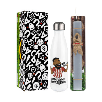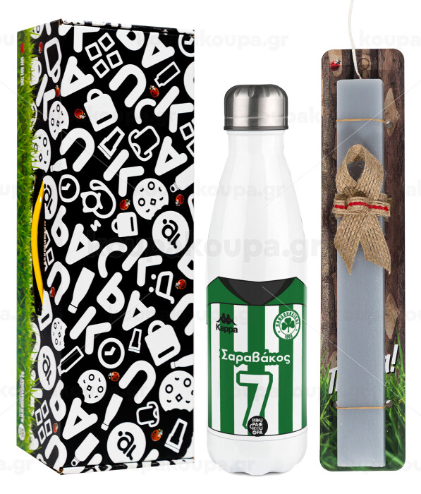 Παναθηναϊκός εμφάνιση, Πασχαλινή Λαμπάδα με μεταλλικό παγούρι θερμός λευκός (500ml) & λαμπάδα αρωματική πλακέ (30cm) (ΓΚΡΙ)