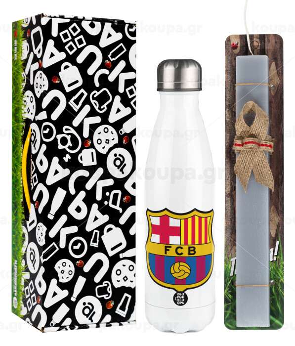 Barcelona FC, Πασχαλινή Λαμπάδα με μεταλλικό παγούρι θερμός λευκός (500ml) & λαμπάδα αρωματική πλακέ (30cm) (ΓΚΡΙ)