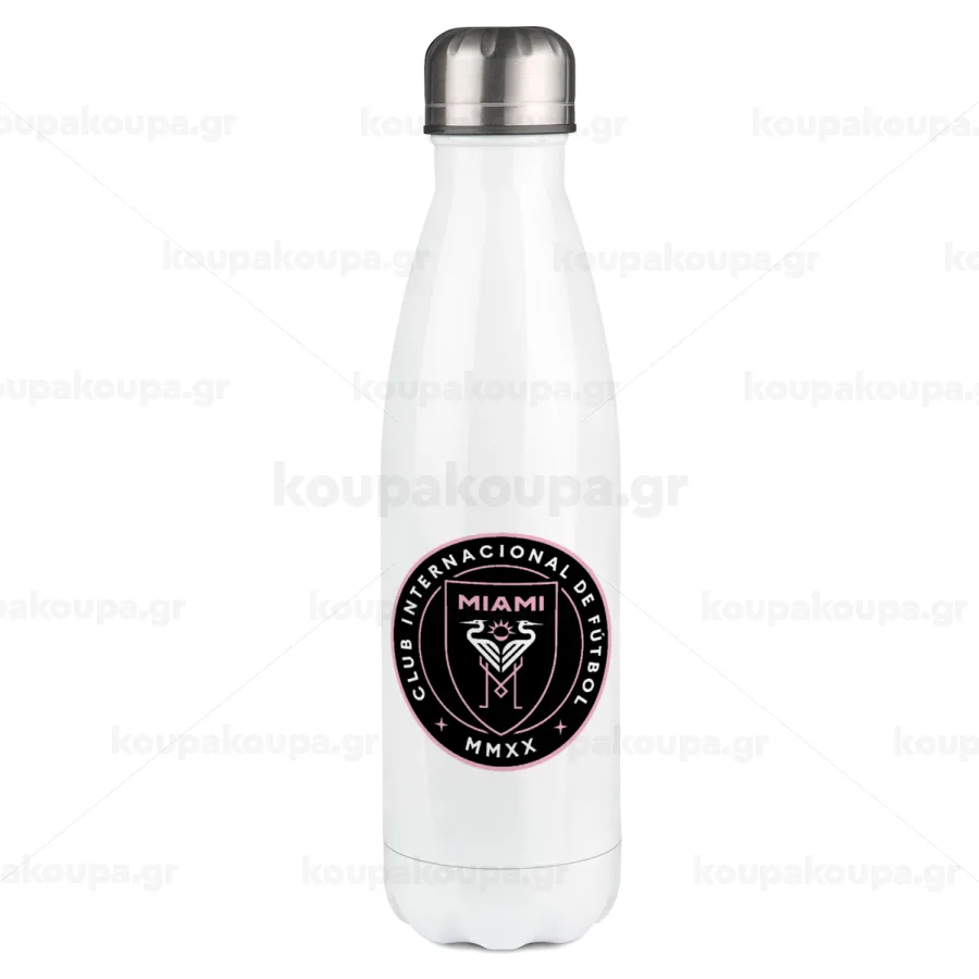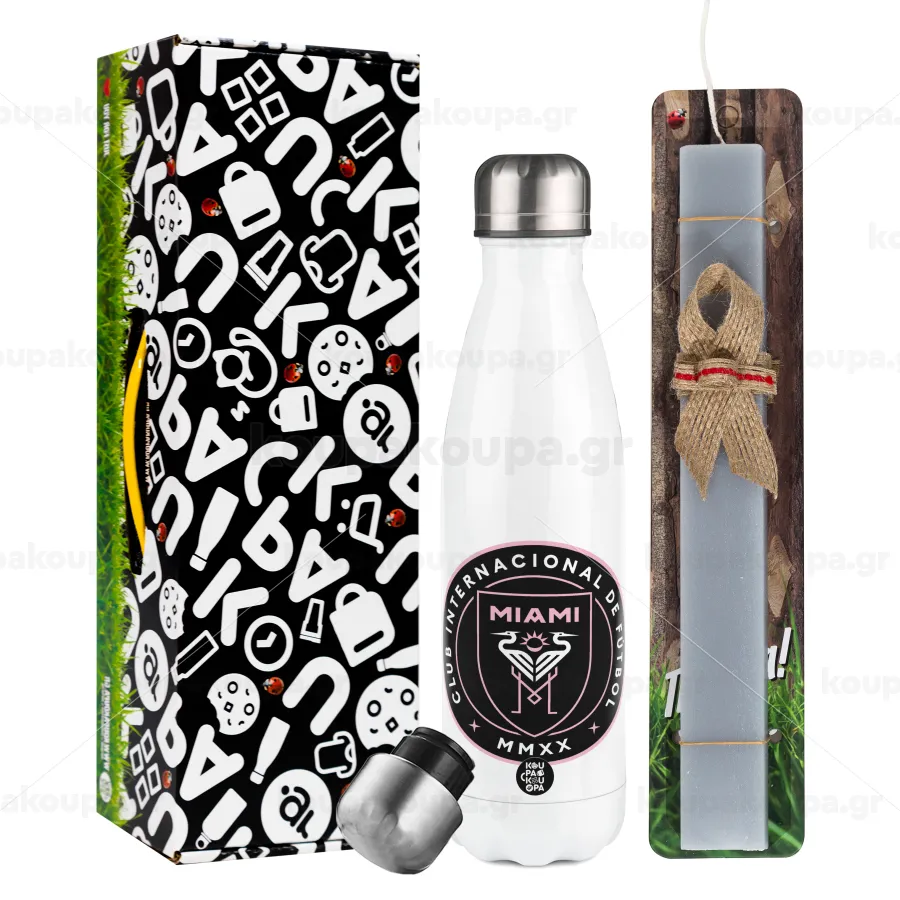 Ίντερ Μαϊάμι (Inter Miami CF), Πασχαλινή Λαμπάδα με μεταλλικό παγούρι θερμός λευκός (500ml) & λαμπάδα αρωματική πλακέ (30cm) (ΓΚΡΙ)