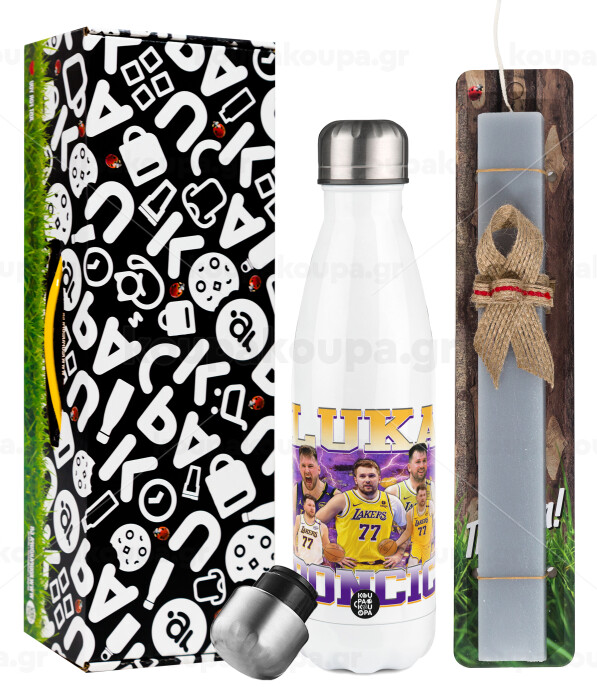 Luka Doncic Basketball , Πασχαλινή Λαμπάδα με μεταλλικό παγούρι θερμός λευκός (500ml) & λαμπάδα αρωματική πλακέ (30cm) (ΓΚΡΙ)