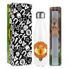 Manchester United F.C., Πασχαλινή Λαμπάδα με μεταλλικό παγούρι θερμός λευκός (500ml) & λαμπάδα αρωματική πλακέ (30cm) (ΓΚΡΙ)