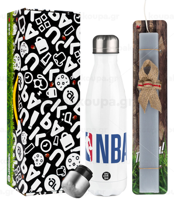 NBA Classic, Πασχαλινή Λαμπάδα με μεταλλικό παγούρι θερμός λευκός (500ml) & λαμπάδα αρωματική πλακέ (30cm) (ΓΚΡΙ)