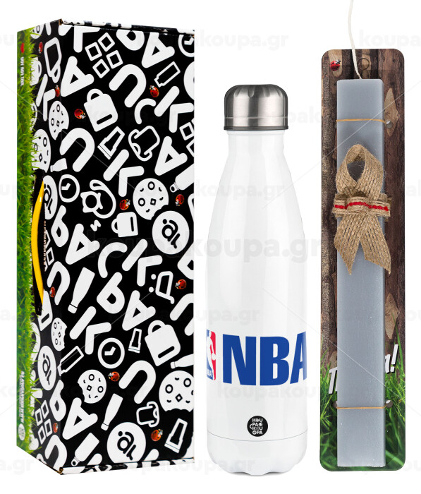 NBA, Πασχαλινή Λαμπάδα με μεταλλικό παγούρι θερμός λευκός (500ml) & λαμπάδα αρωματική πλακέ (30cm) (ΓΚΡΙ)
