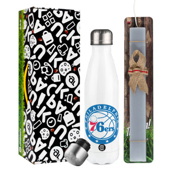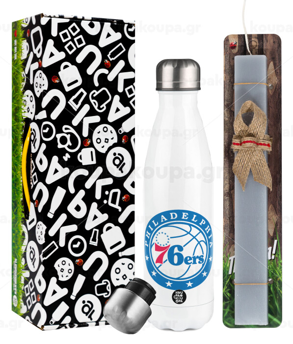 Philadelphia 76ers, Πασχαλινή Λαμπάδα με μεταλλικό παγούρι θερμός λευκός (500ml) & λαμπάδα αρωματική πλακέ (30cm) (ΓΚΡΙ)