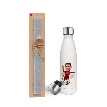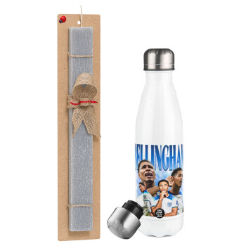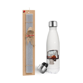 Stitch Basketball, Πασχαλινή Λαμπάδα με μεταλλικό παγούρι θερμός λευκός (500ml) & λαμπάδα αρωματική πλακέ (30cm) (ΓΚΡΙ)