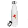 Red poppy flowers papaver, Πασχαλινή Λαμπάδα με μεταλλικό παγούρι θερμός λευκός (500ml) & λαμπάδα αρωματική πλακέ (30cm) (ΓΚΡΙ)