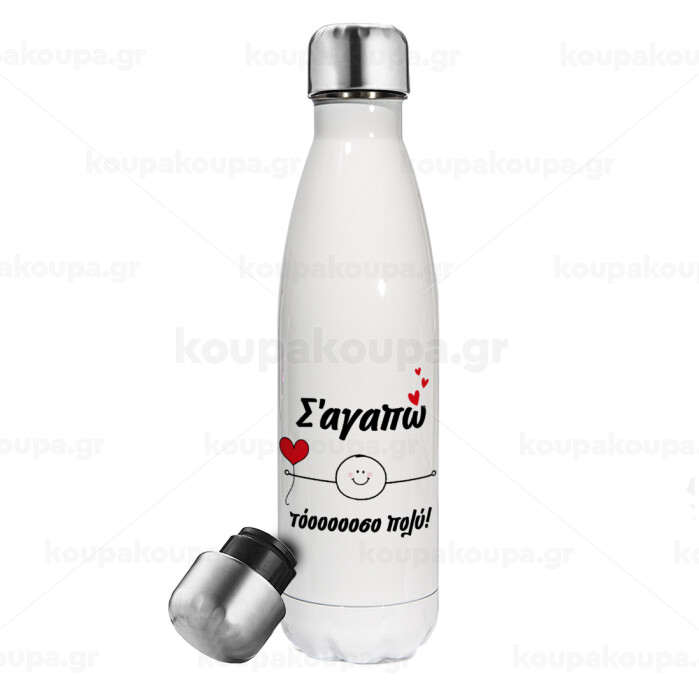 Σ΄αγαπώ τόοοοσο πολύ (Αγόρι)!!!, Πασχαλινή Λαμπάδα με μεταλλικό παγούρι θερμός λευκός (500ml) & λαμπάδα αρωματική πλακέ (30cm) (ΓΚΡΙ)