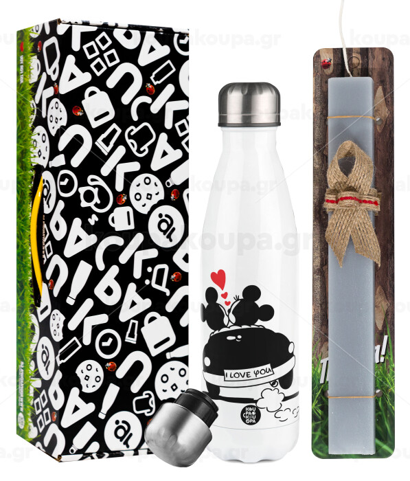 Love Car, Πασχαλινή Λαμπάδα με μεταλλικό παγούρι θερμός λευκός (500ml) & λαμπάδα αρωματική πλακέ (30cm) (ΓΚΡΙ)