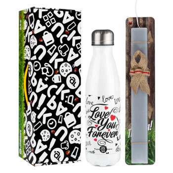Love You Forever, Πασχαλινή Λαμπάδα με μεταλλικό παγούρι θερμός λευκός (500ml) & λαμπάδα αρωματική πλακέ (30cm) (ΓΚΡΙ)