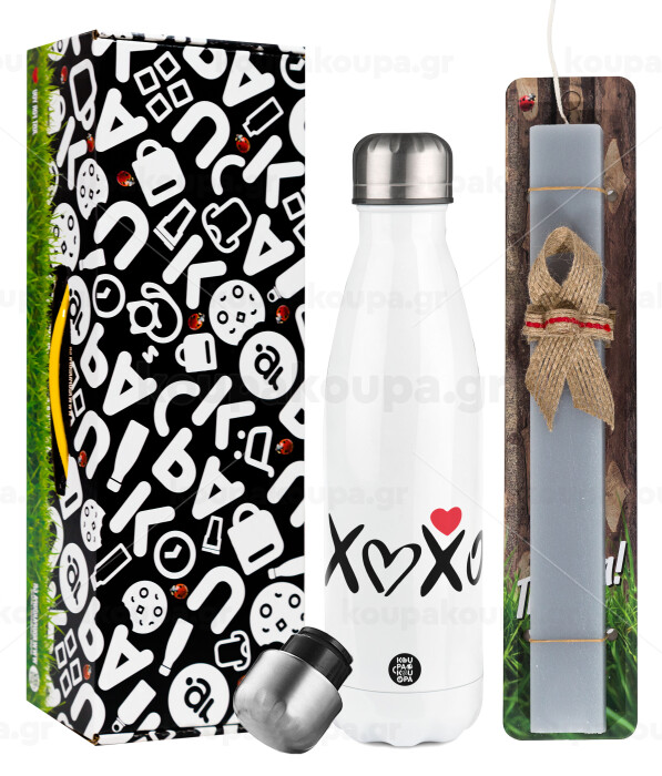 xoxo, Πασχαλινή Λαμπάδα με μεταλλικό παγούρι θερμός λευκός (500ml) & λαμπάδα αρωματική πλακέ (30cm) (ΓΚΡΙ)
