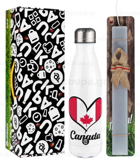 Canada flag, Πασχαλινή Λαμπάδα με μεταλλικό παγούρι θερμός λευκός (500ml) & λαμπάδα αρωματική πλακέ (30cm) (ΓΚΡΙ)