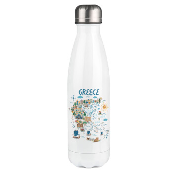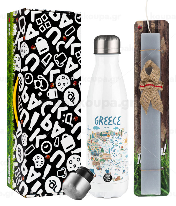 Χάρτης Ελλάδος, Πασχαλινή Λαμπάδα με μεταλλικό παγούρι θερμός λευκός (500ml) & λαμπάδα αρωματική πλακέ (30cm) (ΓΚΡΙ)