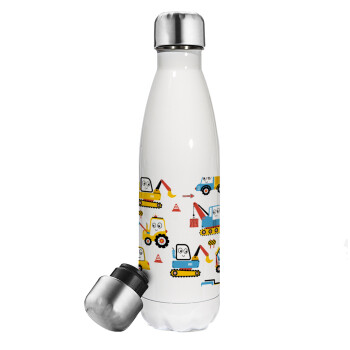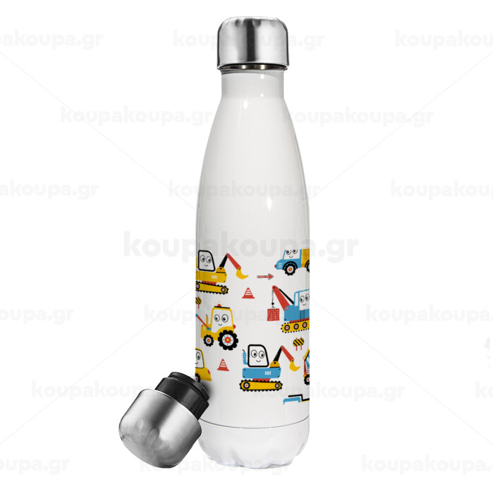 Hand drawing building truck, Πασχαλινή Λαμπάδα με μεταλλικό παγούρι θερμός λευκός (500ml) & λαμπάδα αρωματική πλακέ (30cm) (ΓΚΡΙ)