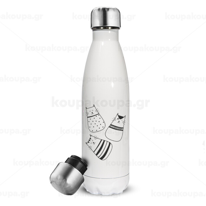 Cute cats, Πασχαλινή Λαμπάδα με μεταλλικό παγούρι θερμός λευκός (500ml) & λαμπάδα αρωματική πλακέ (30cm) (ΓΚΡΙ)