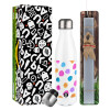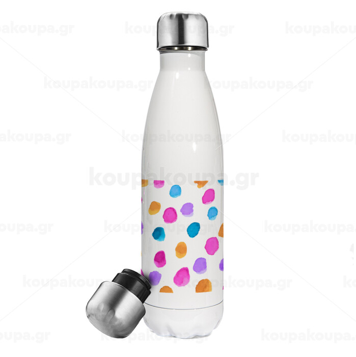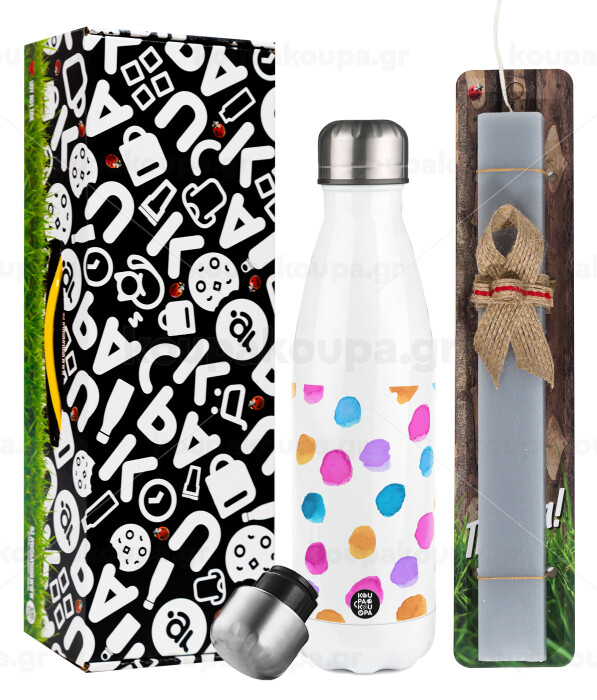 Watercolor dots, Πασχαλινή Λαμπάδα με μεταλλικό παγούρι θερμός λευκός (500ml) & λαμπάδα αρωματική πλακέ (30cm) (ΓΚΡΙ)