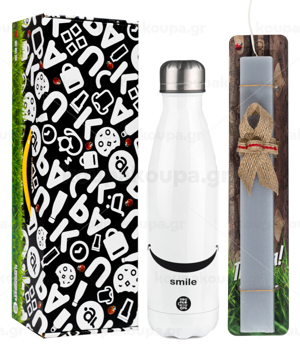 Smile!!!, Πασχαλινή Λαμπάδα με μεταλλικό παγούρι θερμός λευκός (500ml) & λαμπάδα αρωματική πλακέ (30cm) (ΓΚΡΙ)