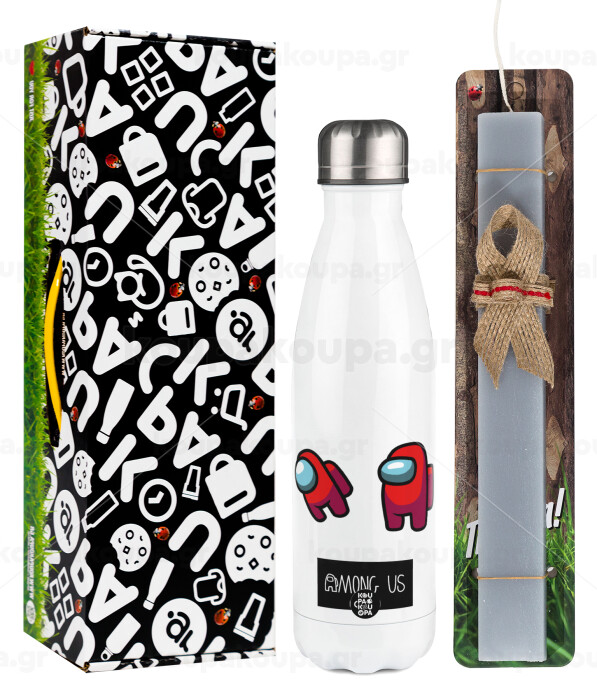 Among US, Πασχαλινή Λαμπάδα με μεταλλικό παγούρι θερμός λευκός (500ml) & λαμπάδα αρωματική πλακέ (30cm) (ΓΚΡΙ)