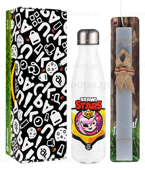 Brawl Stars Melodie, Πασχαλινή Λαμπάδα με μεταλλικό παγούρι θερμός λευκός (500ml) & λαμπάδα αρωματική πλακέ (30cm) (ΓΚΡΙ)