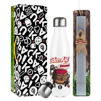 Elden-Aid, Elden Ring inspired , Πασχαλινή Λαμπάδα με μεταλλικό παγούρι θερμός λευκός (500ml) & λαμπάδα αρωματική πλακέ (30cm) (ΓΚΡΙ)