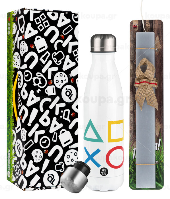Gaming Symbols, Πασχαλινή Λαμπάδα με μεταλλικό παγούρι θερμός λευκός (500ml) & λαμπάδα αρωματική πλακέ (30cm) (ΓΚΡΙ)