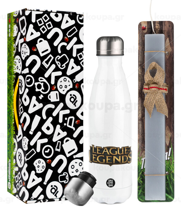 League of Legends LoL, Πασχαλινή Λαμπάδα με μεταλλικό παγούρι θερμός λευκός (500ml) & λαμπάδα αρωματική πλακέ (30cm) (ΓΚΡΙ)