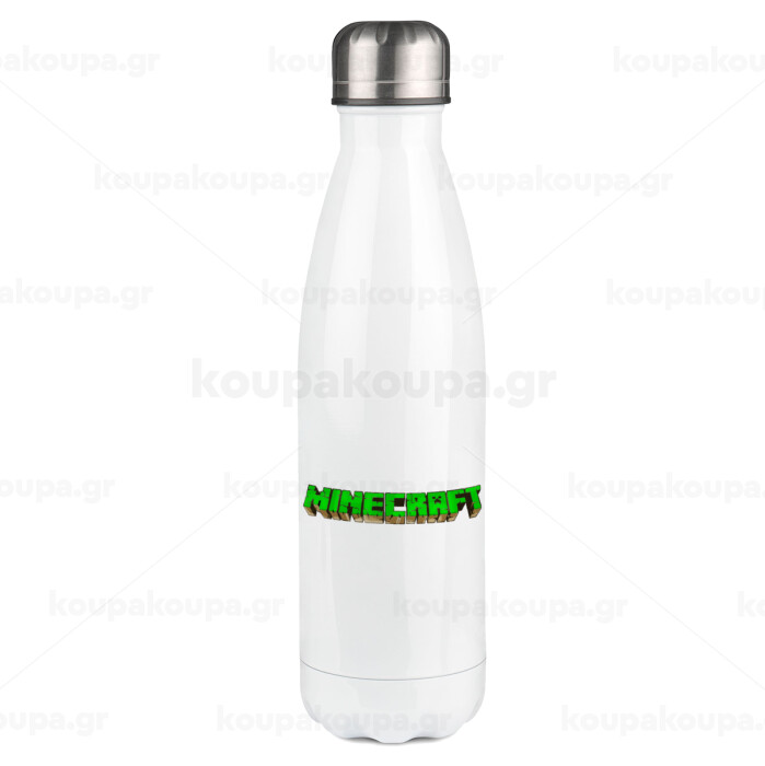 Minecraft logo green, Πασχαλινή Λαμπάδα με μεταλλικό παγούρι θερμός λευκός (500ml) & λαμπάδα αρωματική πλακέ (30cm) (ΓΚΡΙ)