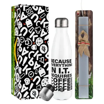 Because everything in I.T. requires coffee, Πασχαλινή Λαμπάδα με μεταλλικό παγούρι θερμός λευκός (500ml) & λαμπάδα αρωματική πλακέ (30cm) (ΓΚΡΙ)