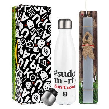 Sudo RM, Πασχαλινή Λαμπάδα με μεταλλικό παγούρι θερμός λευκός (500ml) & λαμπάδα αρωματική πλακέ (30cm) (ΓΚΡΙ)