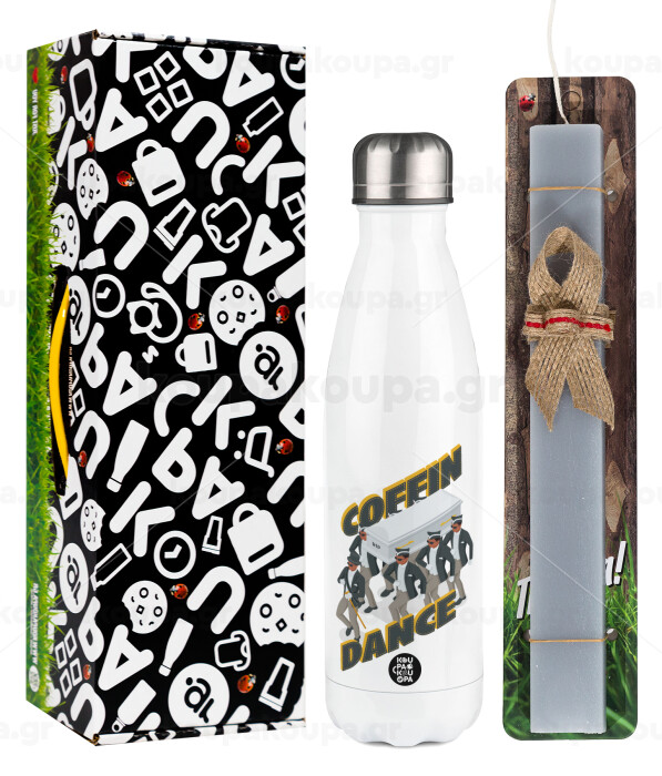 Coffin Dance!, Πασχαλινή Λαμπάδα με μεταλλικό παγούρι θερμός λευκός (500ml) & λαμπάδα αρωματική πλακέ (30cm) (ΓΚΡΙ)