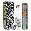 Dream big, Sparkle more, Shine bright, Πασχαλινή Λαμπάδα με μεταλλικό παγούρι θερμός λευκός (500ml) & λαμπάδα αρωματική πλακέ (30cm) (ΓΚΡΙ)