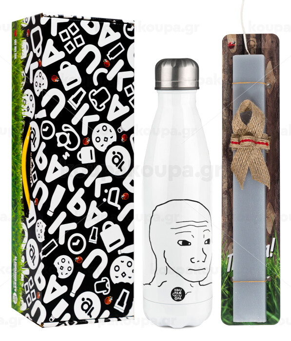 Feel guy, Πασχαλινή Λαμπάδα με μεταλλικό παγούρι θερμός λευκός (500ml) & λαμπάδα αρωματική πλακέ (30cm) (ΓΚΡΙ)