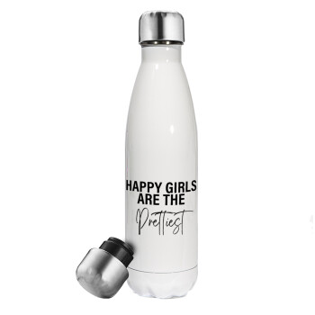 Happy girls are the prettiest, Πασχαλινή Λαμπάδα με μεταλλικό παγούρι θερμός λευκός (500ml) & λαμπάδα αρωματική πλακέ (30cm) (ΓΚΡΙ)