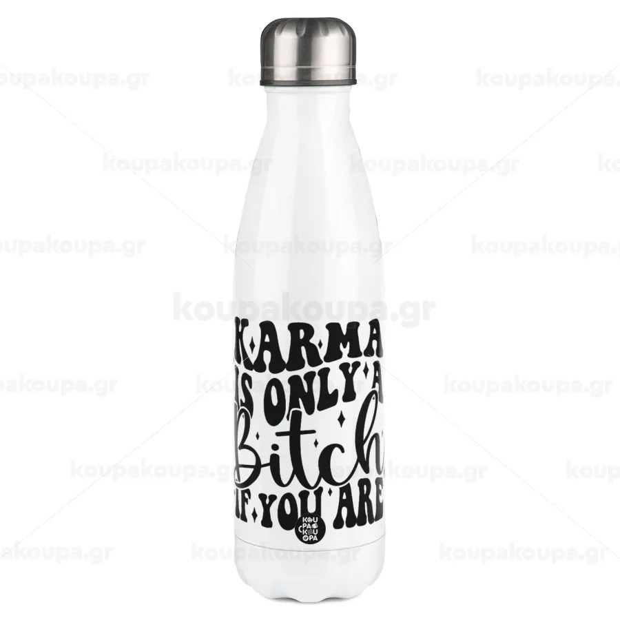 Karma is Only A Bitch if You Are, Πασχαλινή Λαμπάδα με μεταλλικό παγούρι θερμός λευκός (500ml) & λαμπάδα αρωματική πλακέ (30cm) (ΓΚΡΙ)