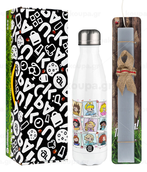 Labubu characters, Πασχαλινή Λαμπάδα με μεταλλικό παγούρι θερμός λευκός (500ml) & λαμπάδα αρωματική πλακέ (30cm) (ΓΚΡΙ)
