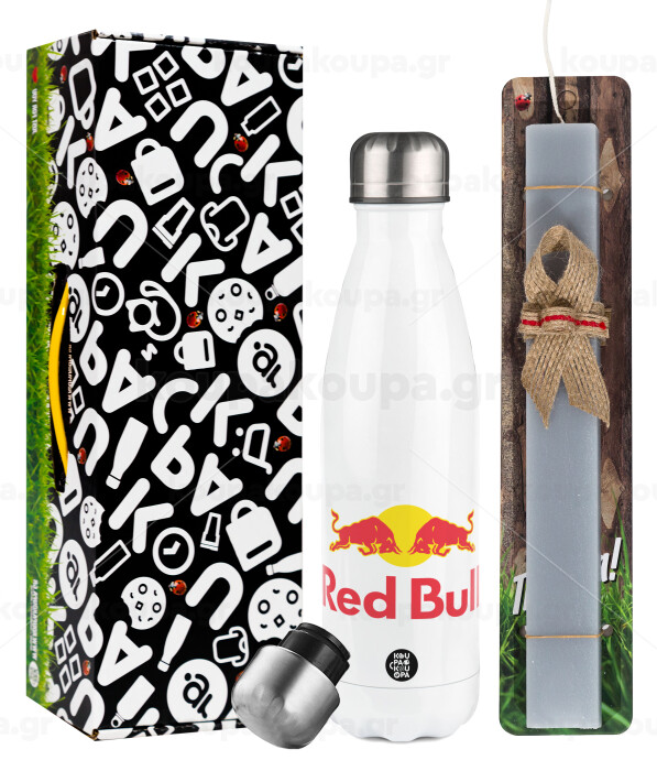 Redbull, Πασχαλινή Λαμπάδα με μεταλλικό παγούρι θερμός λευκός (500ml) & λαμπάδα αρωματική πλακέ (30cm) (ΓΚΡΙ)