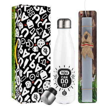 You can do it, Πασχαλινή Λαμπάδα με μεταλλικό παγούρι θερμός λευκός (500ml) & λαμπάδα αρωματική πλακέ (30cm) (ΓΚΡΙ)
