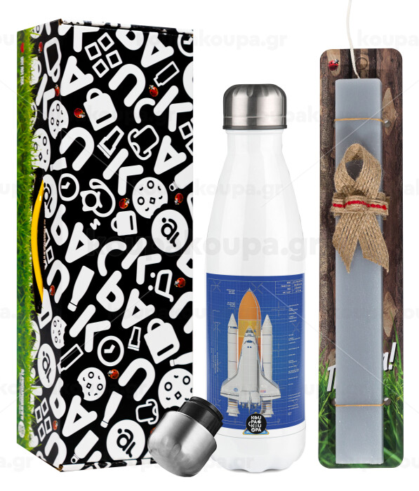 Nasa Space Shuttle, Πασχαλινή Λαμπάδα με μεταλλικό παγούρι θερμός λευκός (500ml) & λαμπάδα αρωματική πλακέ (30cm) (ΓΚΡΙ)
