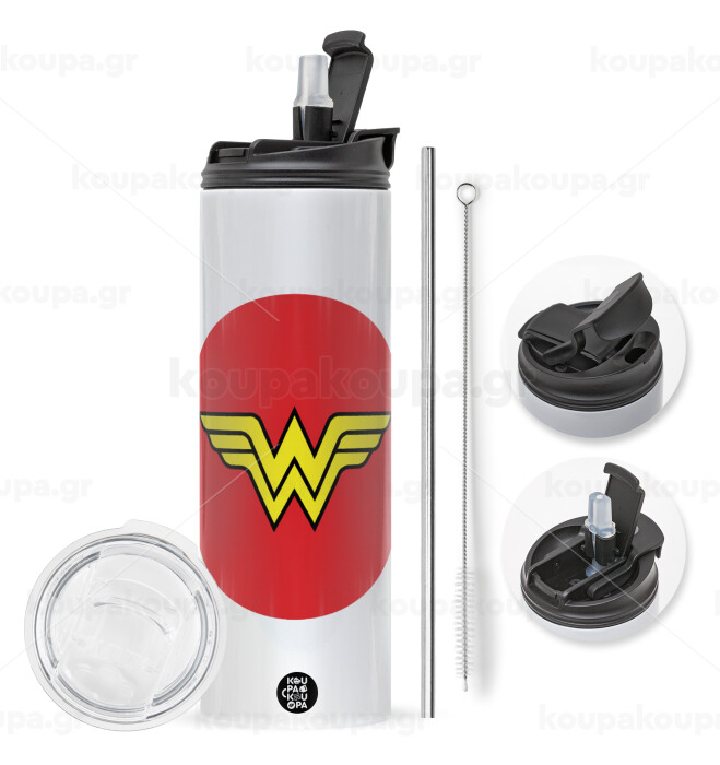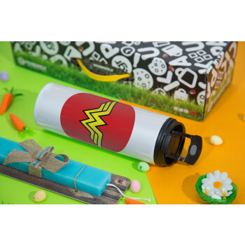 Wonder woman, Πασχαλινή Λαμπάδα με Travel Tumbler θερμό με διπλό καπάκι (600ml, BPA free) & κερί αρωματικό πλακέ (30cm) (ΤΙΡΚΟΥΑΖ)