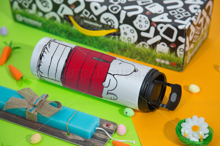 Το σπίτι του snoopy, Πασχαλινή Λαμπάδα με Travel Tumbler θερμό με διπλό καπάκι (600ml, BPA free) & κερί αρωματικό πλακέ (30cm) (ΤΙΡΚΟΥΑΖ)
