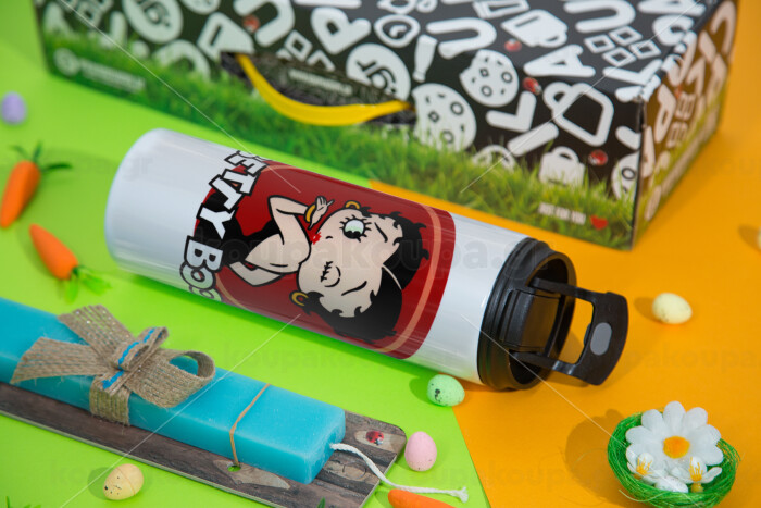 Betty Boop kiss, Πασχαλινή Λαμπάδα με Travel Tumbler θερμό με διπλό καπάκι (600ml, BPA free) & κερί αρωματικό πλακέ (30cm) (ΤΙΡΚΟΥΑΖ)