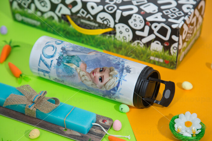Frozen Elsa, Πασχαλινή Λαμπάδα με Travel Tumbler θερμό με διπλό καπάκι (600ml, BPA free) & κερί αρωματικό πλακέ (30cm) (ΤΙΡΚΟΥΑΖ)