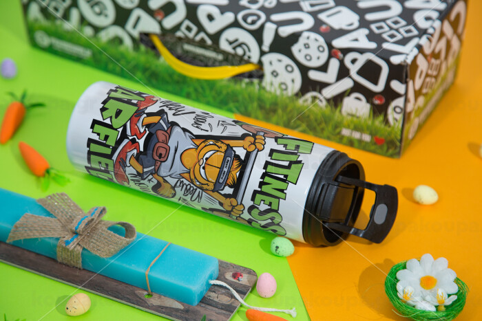 Garfield Fitness, Πασχαλινή Λαμπάδα με Travel Tumbler θερμό με διπλό καπάκι (600ml, BPA free) & κερί αρωματικό πλακέ (30cm) (ΤΙΡΚΟΥΑΖ)