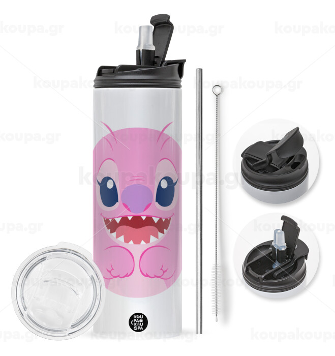 Lilo & Stitch Angel pink, Πασχαλινή Λαμπάδα με Travel Tumbler θερμό με διπλό καπάκι (600ml, BPA free) & κερί αρωματικό πλακέ (30cm) (ΤΙΡΚΟΥΑΖ)