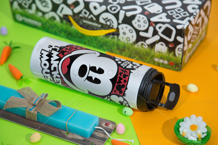 Mickey Mouse, Πασχαλινή Λαμπάδα με Travel Tumbler θερμό με διπλό καπάκι (600ml, BPA free) & κερί αρωματικό πλακέ (30cm) (ΤΙΡΚΟΥΑΖ)