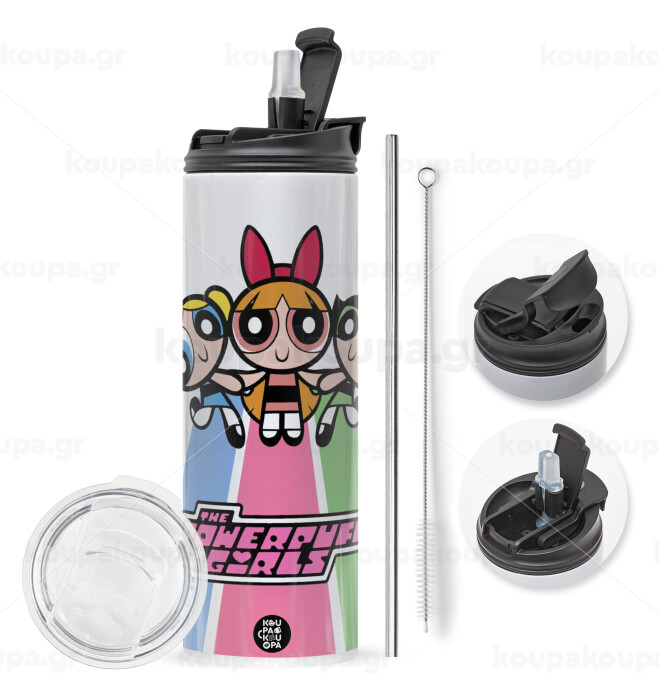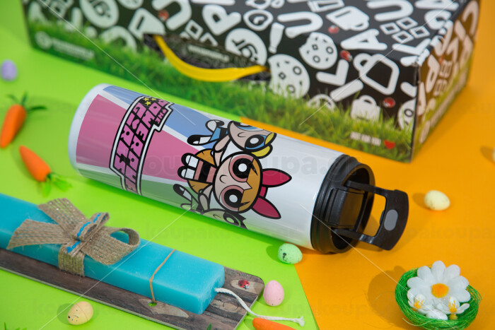 The powerpuff girls , Πασχαλινή Λαμπάδα με Travel Tumbler θερμό με διπλό καπάκι (600ml, BPA free) & κερί αρωματικό πλακέ (30cm) (ΤΙΡΚΟΥΑΖ)
